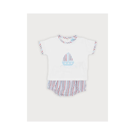 Sardon Baby Boy White and Blue Stripe Bubble Short Set