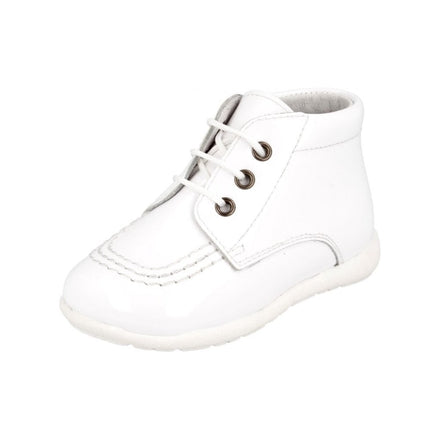 Andanines Boys Velcro Strap Leather Boot in Pale Blue Patent
