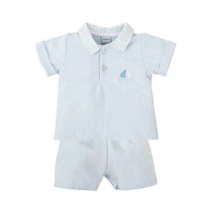 Babidu Baby Boy Pale Blue Cotton Polo and Shorts.
