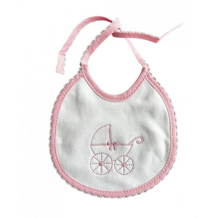 Sardon New Baby Pram Embroidered Velcro Bib in Pink