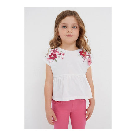 Mayoral Girls White with Fuchsia Embroidery T-shirt