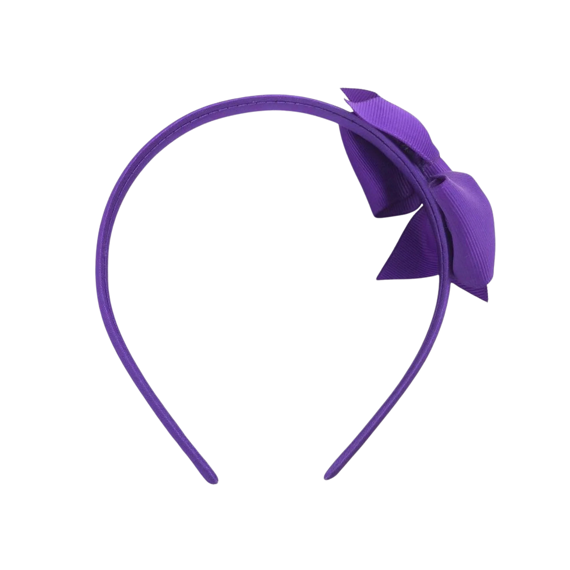 These hairbands are the perfect accessory for matching with an outfit or to add a contrasting shade. This large, grosgrain ribbon bow sits on a ribbon covered alice band.