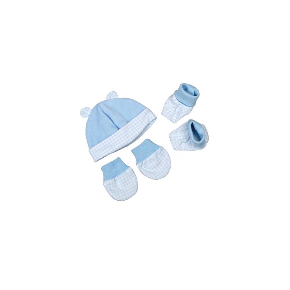 Dandelion Premature Baby Hat, Booties and Mittens in Blue