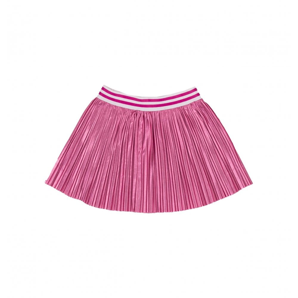 Add a glitzy touch to a cute top with this skirt for girls by Everything Must Change. The pleated skirt has a shiny, metallic finish.