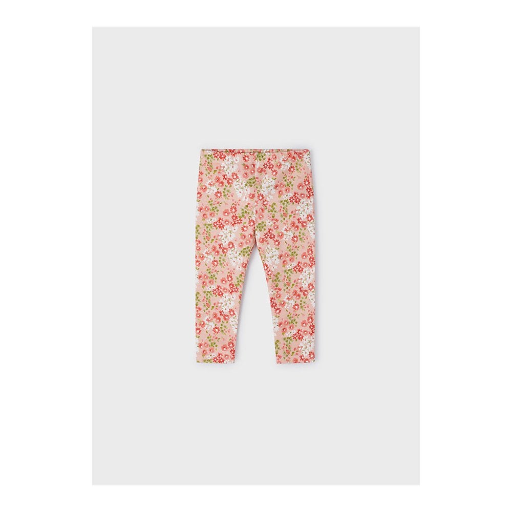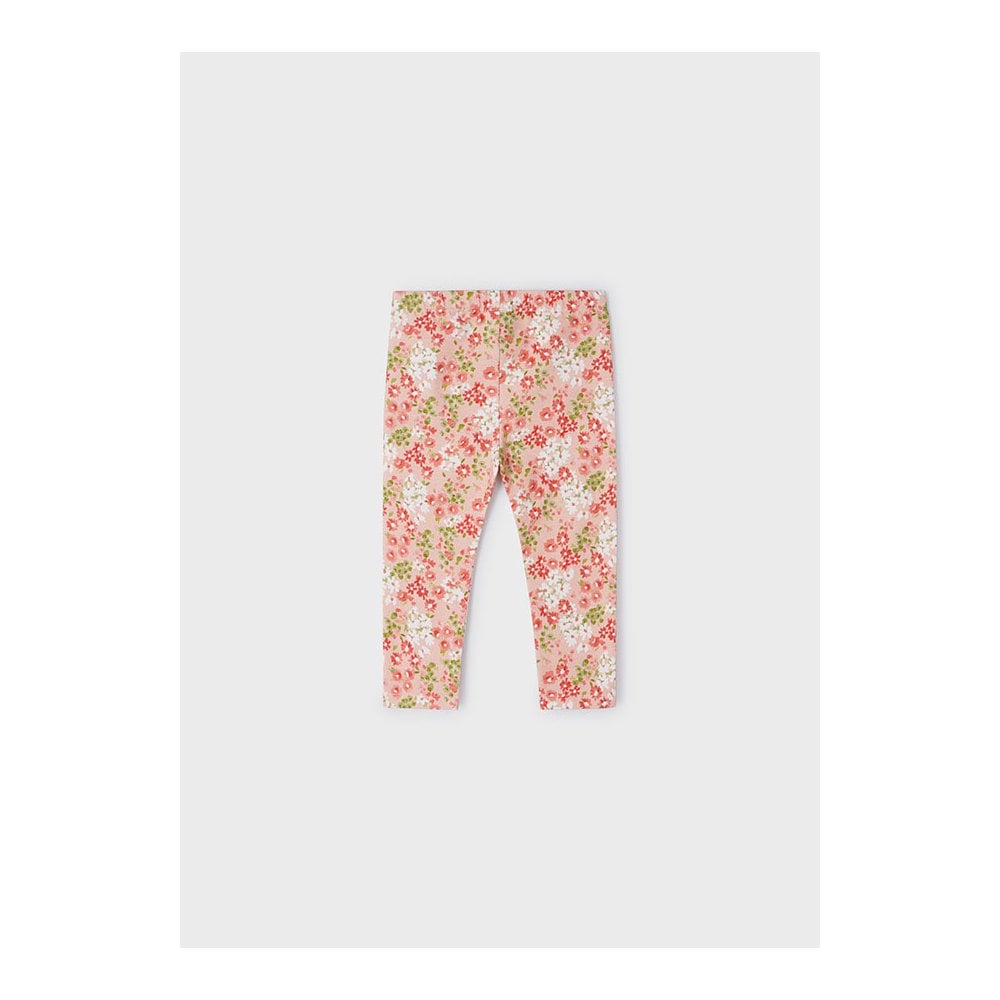 A beautifully soft pair of girl's, cropped length leggings by Mayoral. They are made in super-stretchy cotton jersey with elastane to retain their shape and give a comfortable fit. All over flower pattern.