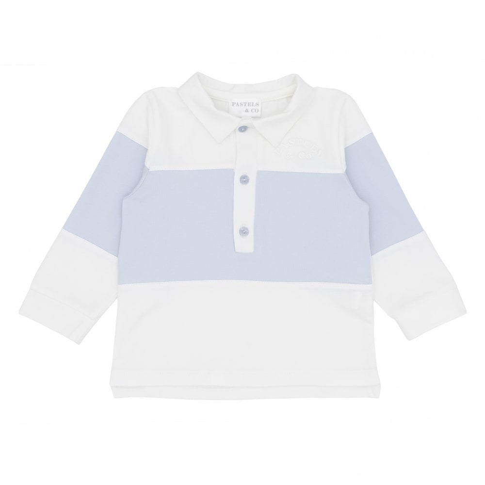 Pastels & Co Baby Boy Pale Blue and White Rugby Top