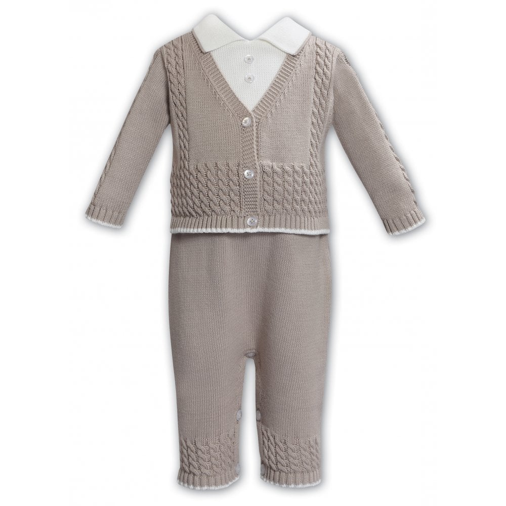 Sarah Louise Boys Beige and Ivory Knitted Romper