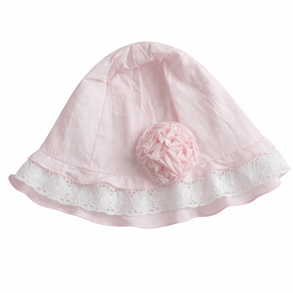 Sarah Louise Girls Broderie Anglaise Trim Sunhat in Pale Pink