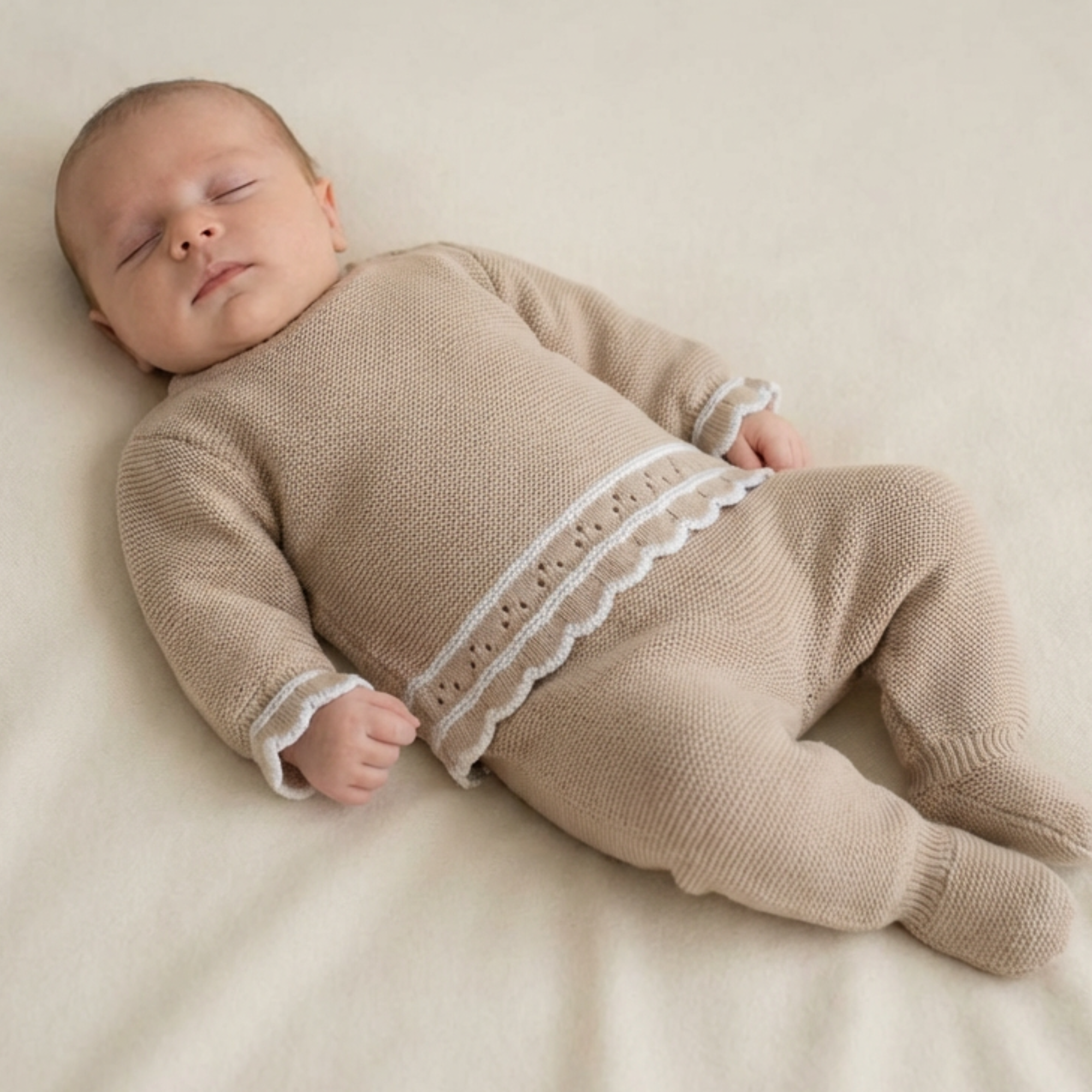 Sardon Baby Beige Knitted Jumper and Legging Set.