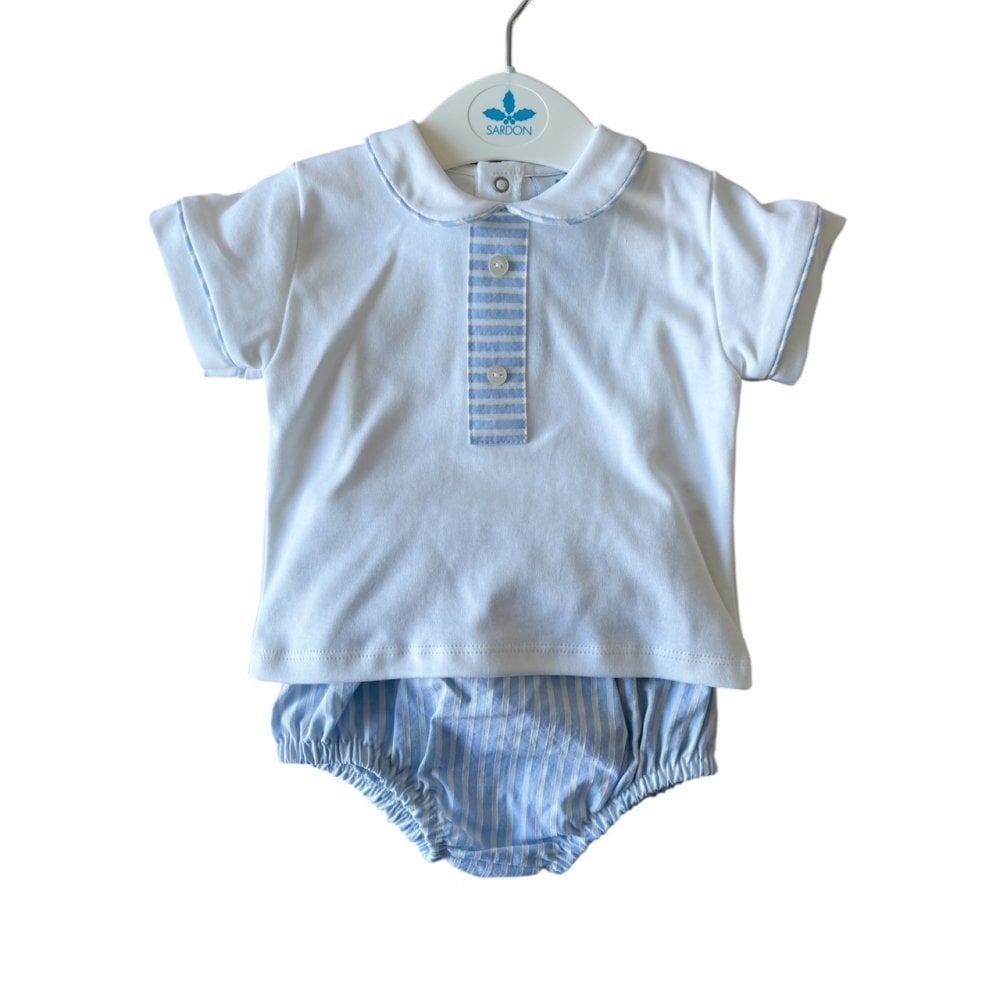 Sardon Baby Boy White and Blue Stripe Bubble Short Set